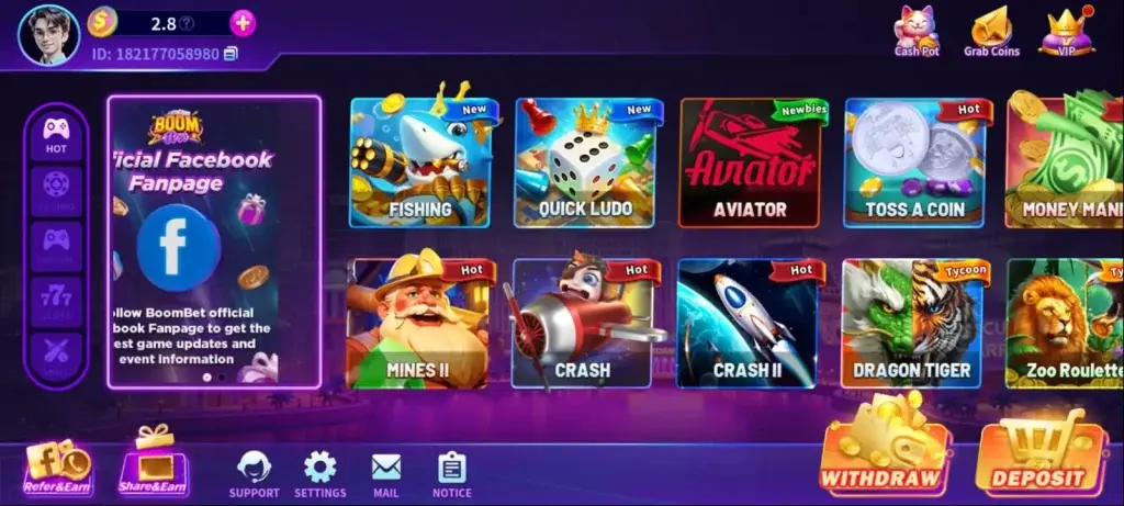 Boom Bet Game is a casino style digital platform designed for Pakistani users who want entertainment with earning opportunities. It operates as a Pakistani earning platform where players can access different games, place bets, and experience real time outcomes. Depending on gameplay, users may lose or win money, which adds excitement to every session.