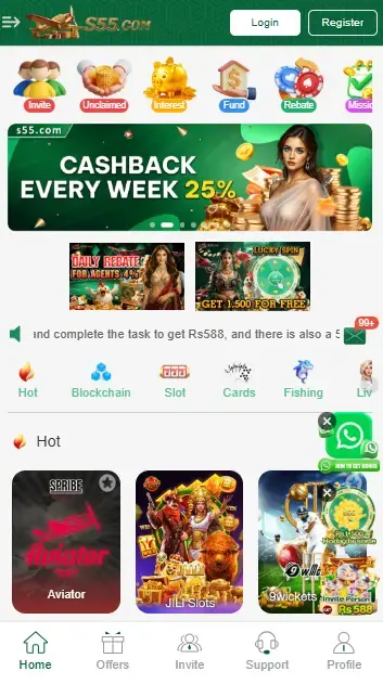 The S55 Game is an virtual betting app in Pakistan, which is blending entertainment and money earning. This app is developed so that you all could have the best option to of earning money from it. This casino application is not like the common casino apps in Pakistan, it’s totally unique. Because it is hosting multiple of games in just one single app, S55.